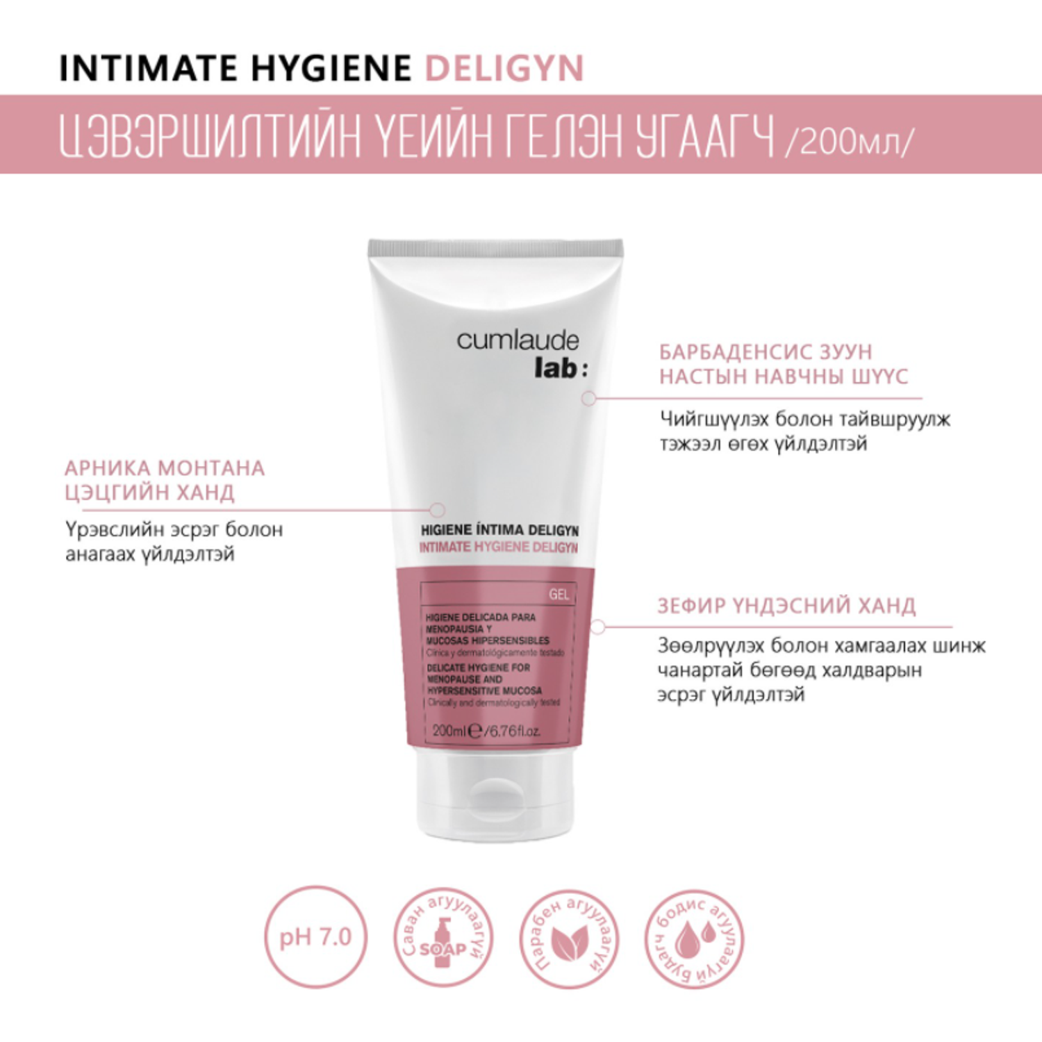 Өдөр тутмын эрүүл ахуйг сахихад зориулагдсан бөгөөд эмзэг эрхтэний рН орчинг тэнцвэржүүлэх үйлчилгээтэй гелэн угаагч. 200 мл